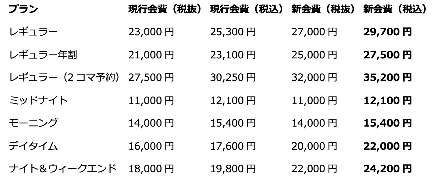 【重要】宇都宮駅東口店プレミアムルーム会費改定のお知らせ